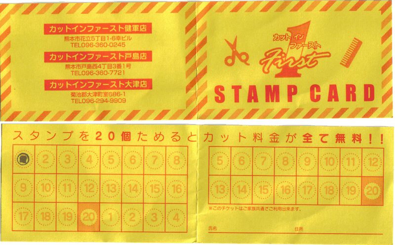 1000 Yen for a haircut? 'Yes please' I cry as I slow the car to a screeching halt and dash through the yellowy tinged doorway. I receive the said cut, more than adequate, and reiterate the joy to myself as a loyalty card is thrust into my hand on leaving. Sugoii! True customer service. They really know how to treat a....... Wait a minute... I get one free haircut for every 19 I pay for!? Is that theoretically possible? The card has space for 40 haircuts, a task for which my life is now completely resigned towards completing. 40 haircuts from now should keep me trimmed well into the next decade |
