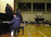Every kid in school had a chance to sing today. They did a great job. Throughout the day I watched in amazement as 3 girls fainted and were carried out of the hall on stretchers. One girl hyperventilated before and after her piano piece, breathing into her hand towel with vigure. One of the fainting girls came back to sing. You can see her being propped up by a teacher on the front row. And yes, the stretcher came back out too... |